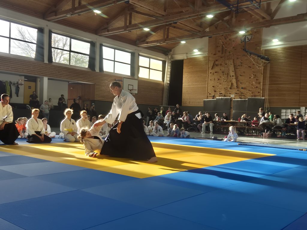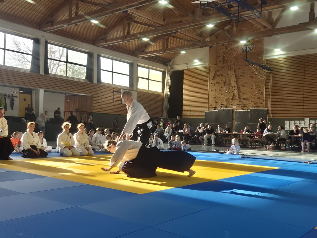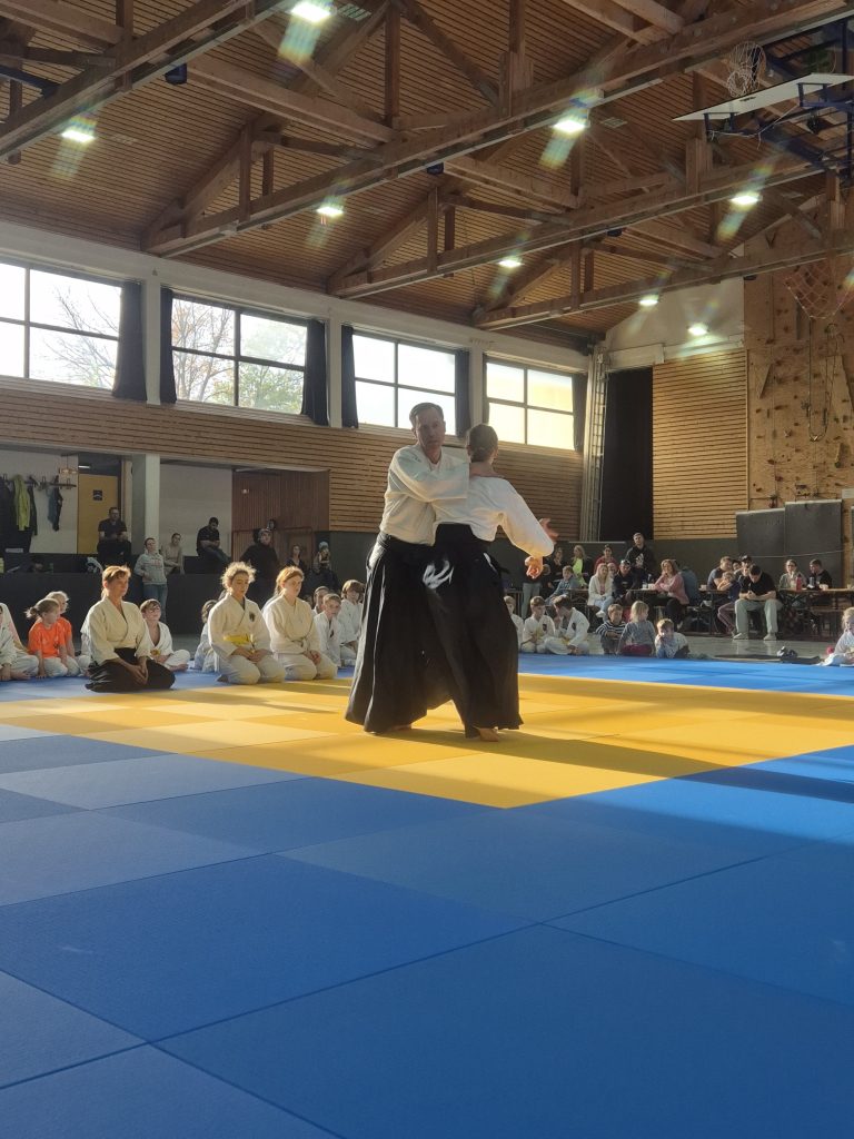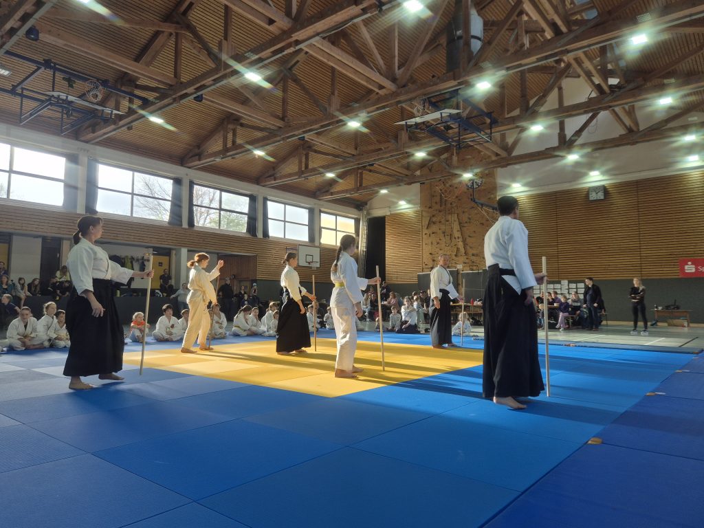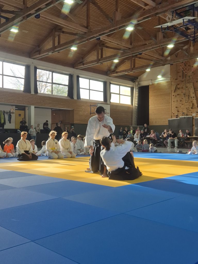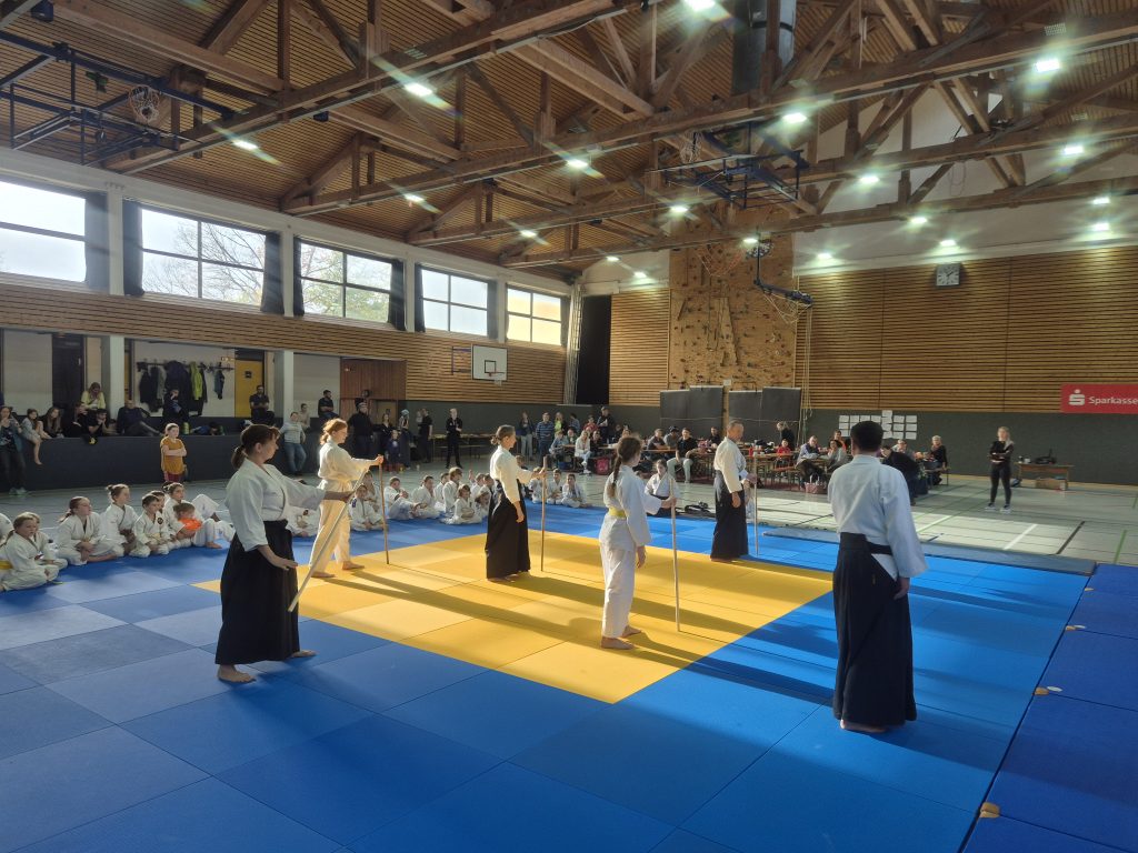 Ein besonderer Programmpunkt war der Auftritt der Aikido-Abteilung, die verschiedene Katas auf Schüler- und Meisterstufen demonstrierte und damit großen Beifall beim Publikum erntete.