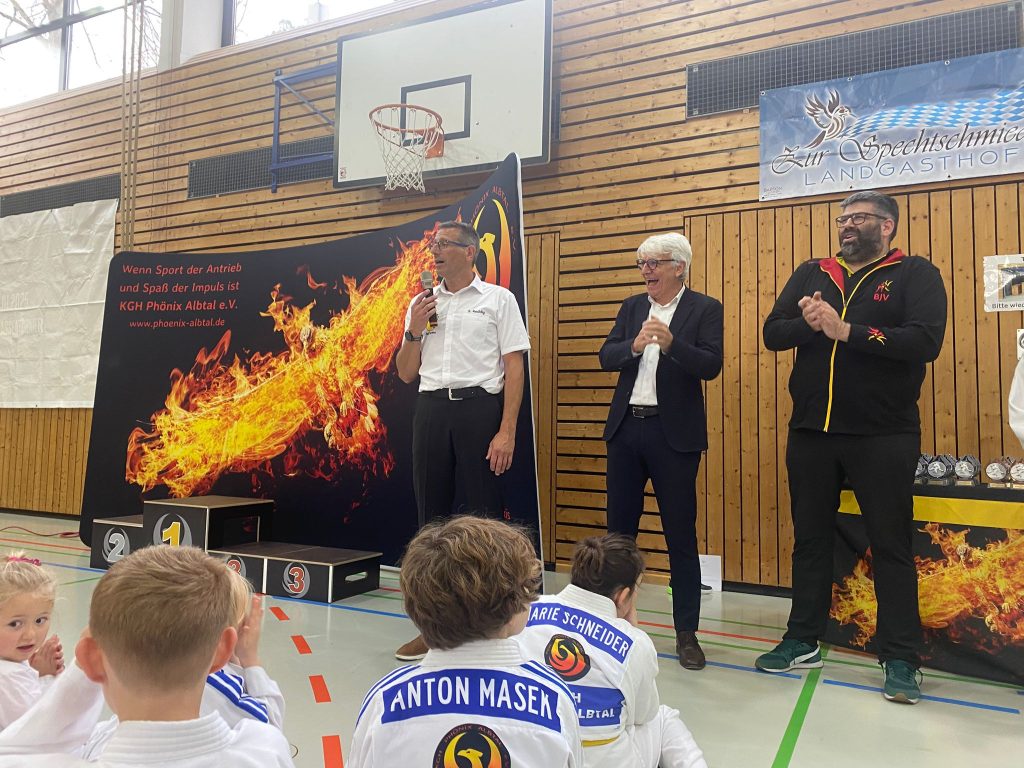 Im Anschluss an die Wettkämpfe begrüßte die KGH hochrangige Gäste: Markus Eisemann, Präsident des Badischen Judobundes, sowie Bad Herrenalbs Bürgermeister Hoffmann würdigten in ihren Ansprachen die positive Entwicklung des Vereins und die hervorragende Nachwuchsarbeit. Bürgermeister Hoffmann übernahm zudem die Siegerehrung und zeichnete die besten Sportlerinnen und Sportler des Jahres aus.